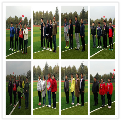 在运动会举行过程中,学工部领导、各学院领导到场为各单项获得前三名的运动员颁发了奖牌。