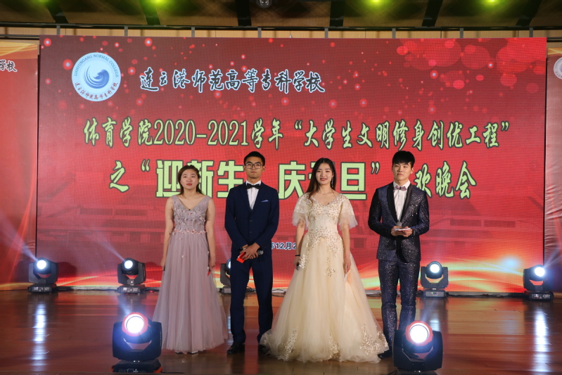 2021年是中国共产党成立100周年、“十四五”规划开局之年,为迎接新征程,表达对200余名2020级新生的欢迎和对全体师生的祝福,12月28日下午5点,体育学院在彦函楼音乐厅举行“大学生文明修身创优工程”之“迎新生、庆元旦”联欢晚会。晚会特别邀请副校长顾强、宣传部部长赵明、学生工作部部长朱建国、初等教育学院党总支书记张志连、体育学院党总支书记许苗堂、院长赵海龙、学生工作部副部长马广杰、美术学院党总支副书记杨同斌、海洋港口学院党总支副书记吴雨荣、外语与商务学院党总支副书记朱羚、体育学院党总支副书记嵇仙峰等领导与全院师生一同联欢。晚会由19体教1班薛彤轩、19体教3班王金娜、20体教2班刘晋玮、20体教4班张寒等同学主持。