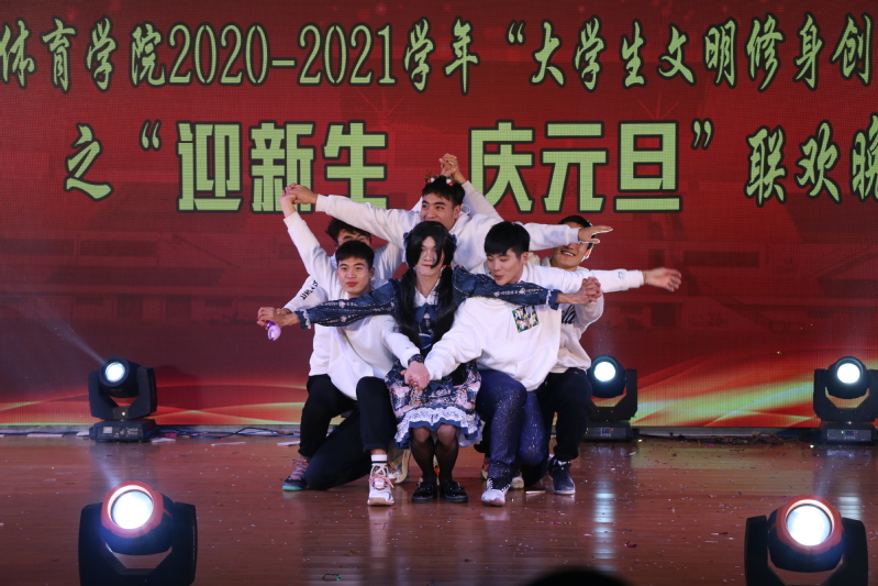 20体教1班刘虎鹏等同学的舞蹈《失恋阵线联盟》,20体教4班张治国同学的说唱《do you want more》,20社体2班倪俊杰、赵茁荣等同学的舞蹈《Hi Together》,学生会朱鸿星、冯月等同学舞蹈串烧《What is love》、《巴啦啦小魔仙》,太极拳俱乐部王昊天等同学太极拳表演等节目精彩纷呈,整场晚会高潮迭起,充分展示我院师生阳光文明、丰富多彩的校园文化生活和较高的专业技能。晚会虽已落幕,但奋斗的脚步永不停止,站在岁月的路口,对不平凡的2020年道声再见、向砥砺奋斗的2021年问声你好!祝福“阳光”体院蒸蒸日上,祝福“三力”师专再创辉煌!