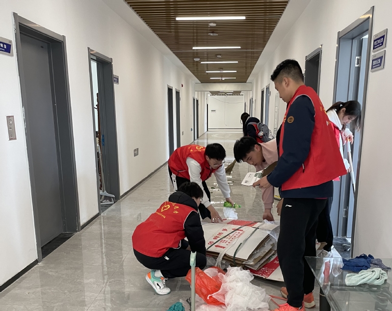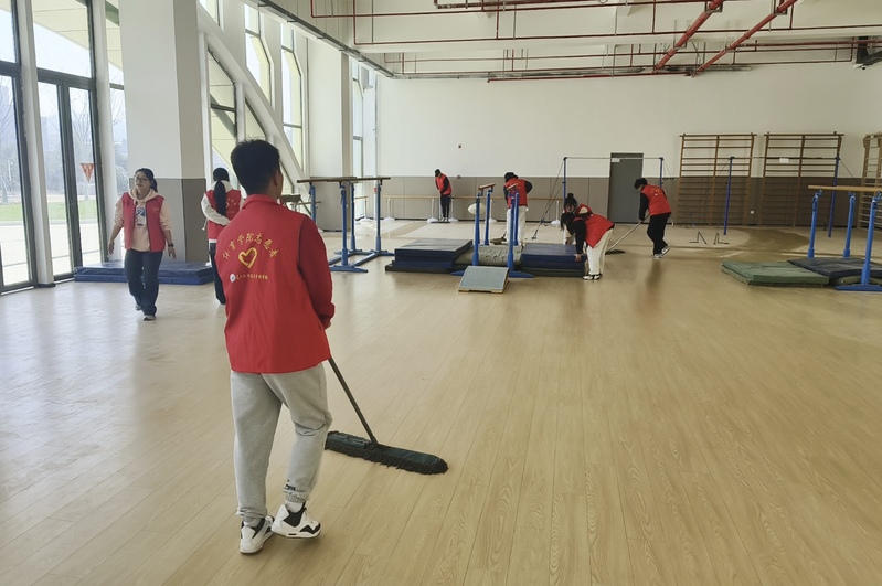 支部党员、入党积极分子们利用中午休息时间,集中来到校公共体育中心,分区域开展卫生大扫除。在体操房、健美操房、乒乓球房、办公区走道、楼梯等区域,都能看到志愿者们忙碌的身影。他们认真清理卫生死角垃圾、用心摆放每一处教学器材、细致擦净每块玻璃,不怕脏、不怕累,用实际行动践行志愿者精神,为美化校园贡献一份力量。