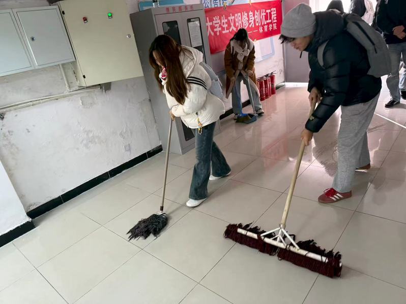 12月4日,为深入推进大学生文明修身创优工程,体育学院开展“校园文明”创建活动,通过“校园文明”宣传教育、校园环境整治系列活动,以实际行动营造“以文明为美”的校园氛围。